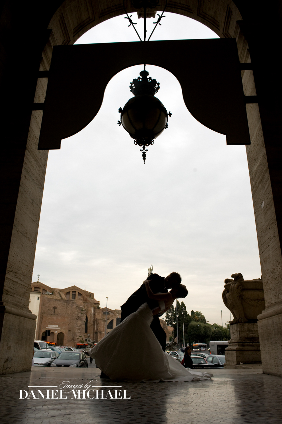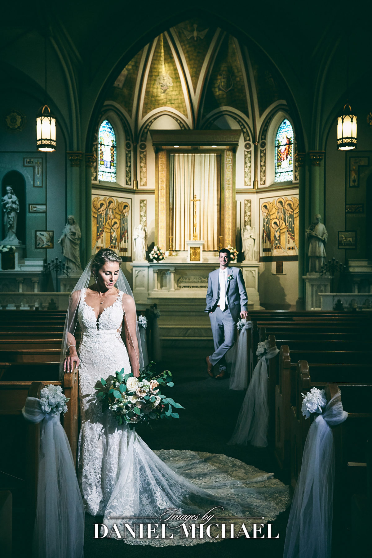 Moody Dramatic Wedding Photo with Classic Pose in Church