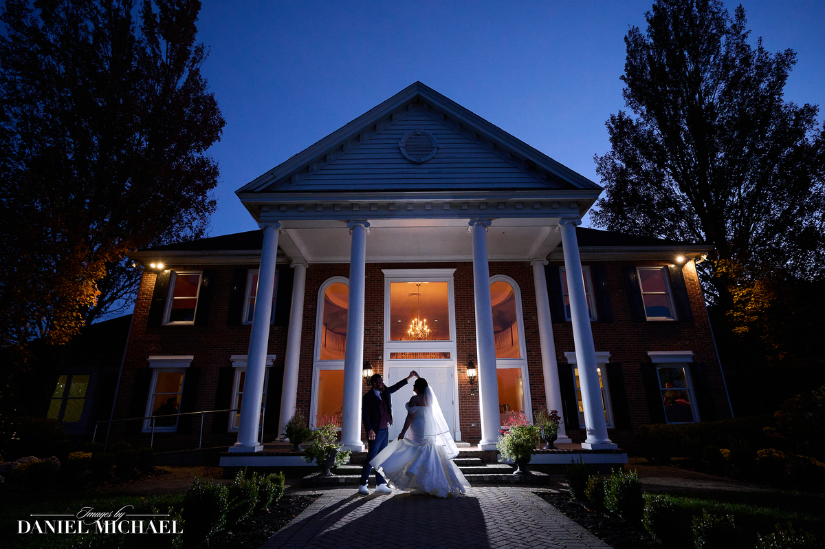 Moody Dramatic Wedding Photo with Editorial Pose at Estate at Sunset Farms